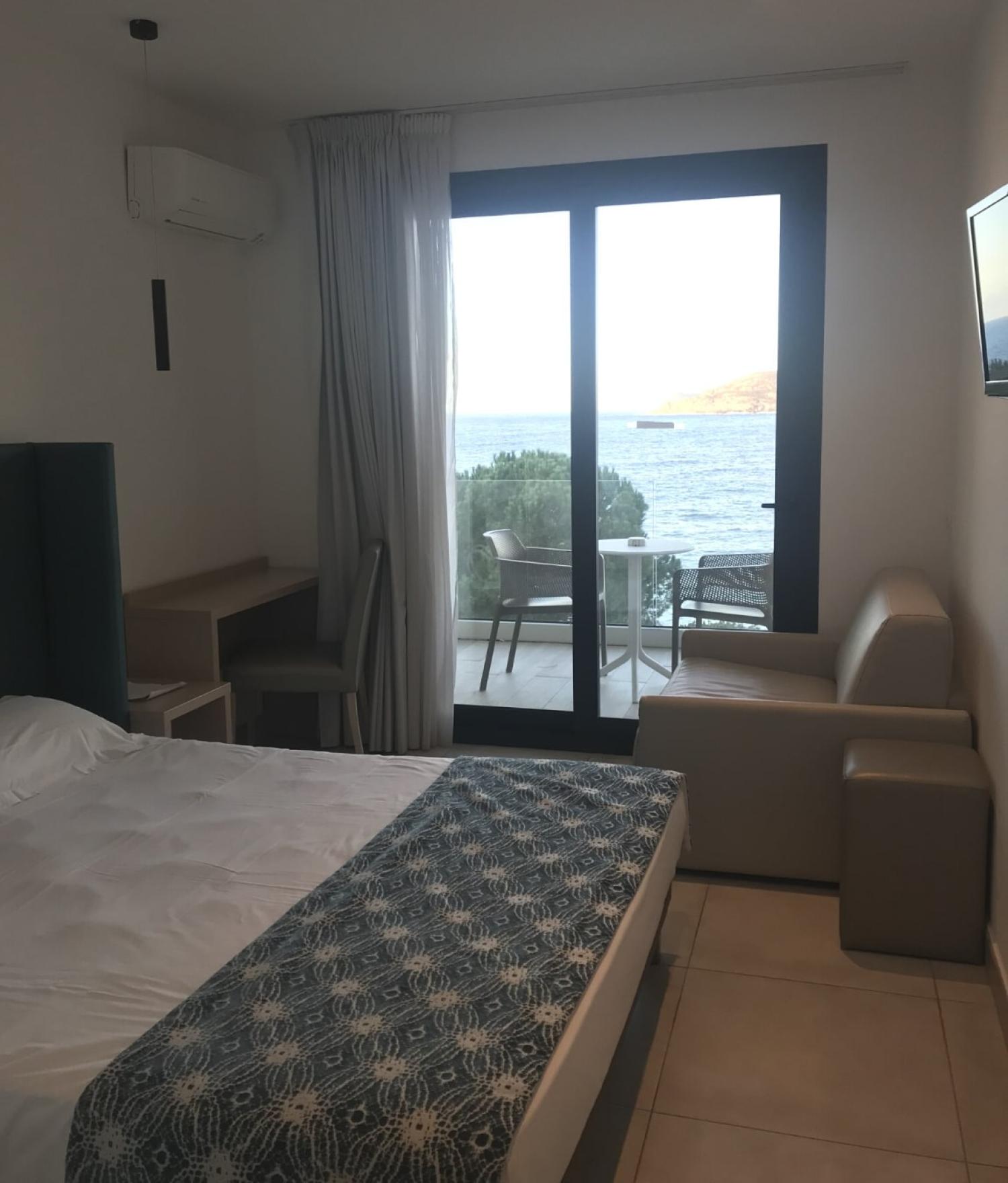 L’établissement dispose d’un nombre limité de chambres confortables, la plupart avec balcon ou terrasse offrant une vue dégagée sur la mer et la baie. Des gîtes et un appartement sont également proposés pour les séjours en famille ou pour ceux qui souhaitent davantage d’indépendance.